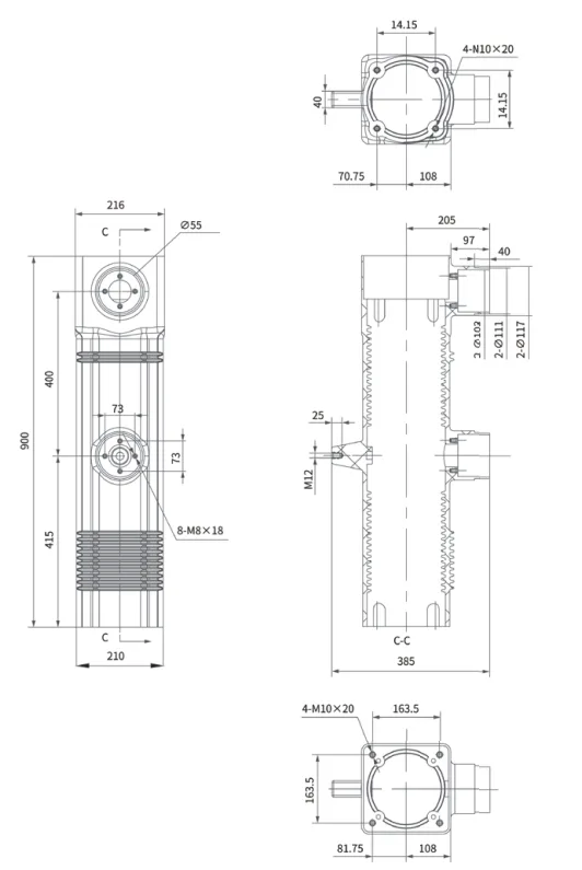– The 55mm phase-to-phase busbar spacing offers improved dielectric clearance and creepage distance for 40.5kV operation, ensuring superior insulation performance and reduced risk of phase-to-phase faults.