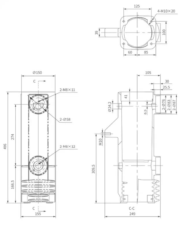 – The four-hole fixed mounting design provides mechanical stability and simplifies installation/alignment within switchgear compartments.